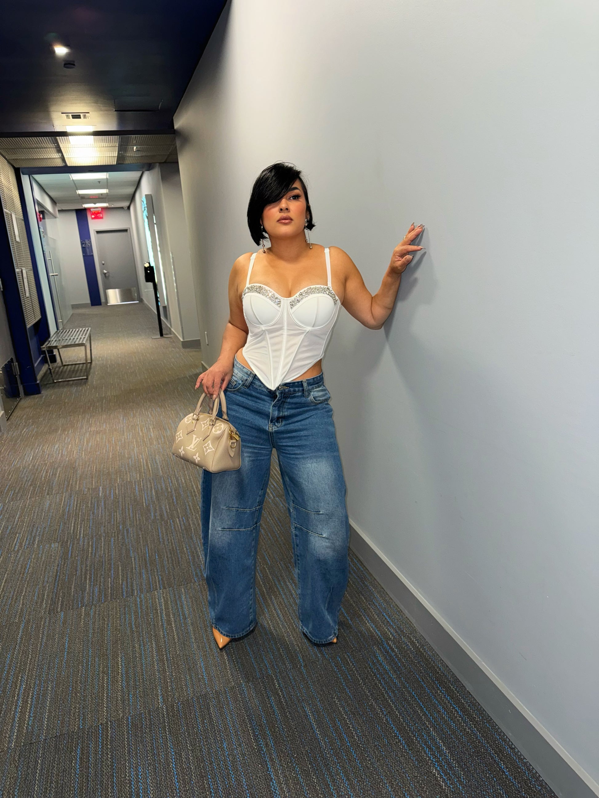 diseno tipo bustier con varillas que definen y realza la figura, detalle en pedreria brillante para un acabado glam.tirante seguro en la parte posterior con cuatro hilera de ganchos ofreciendo mas opciones de ajuste y comodida.